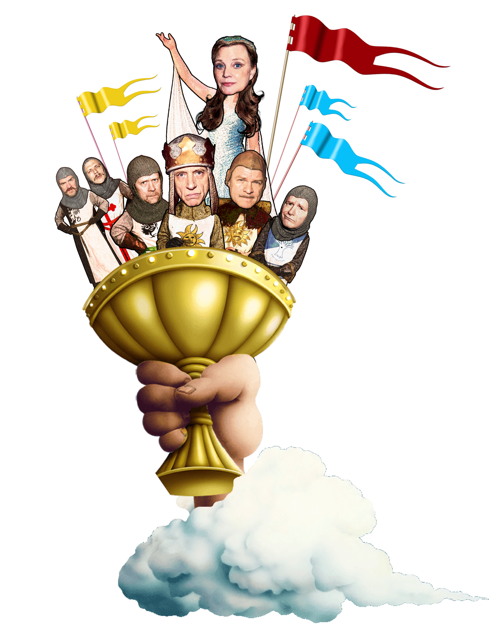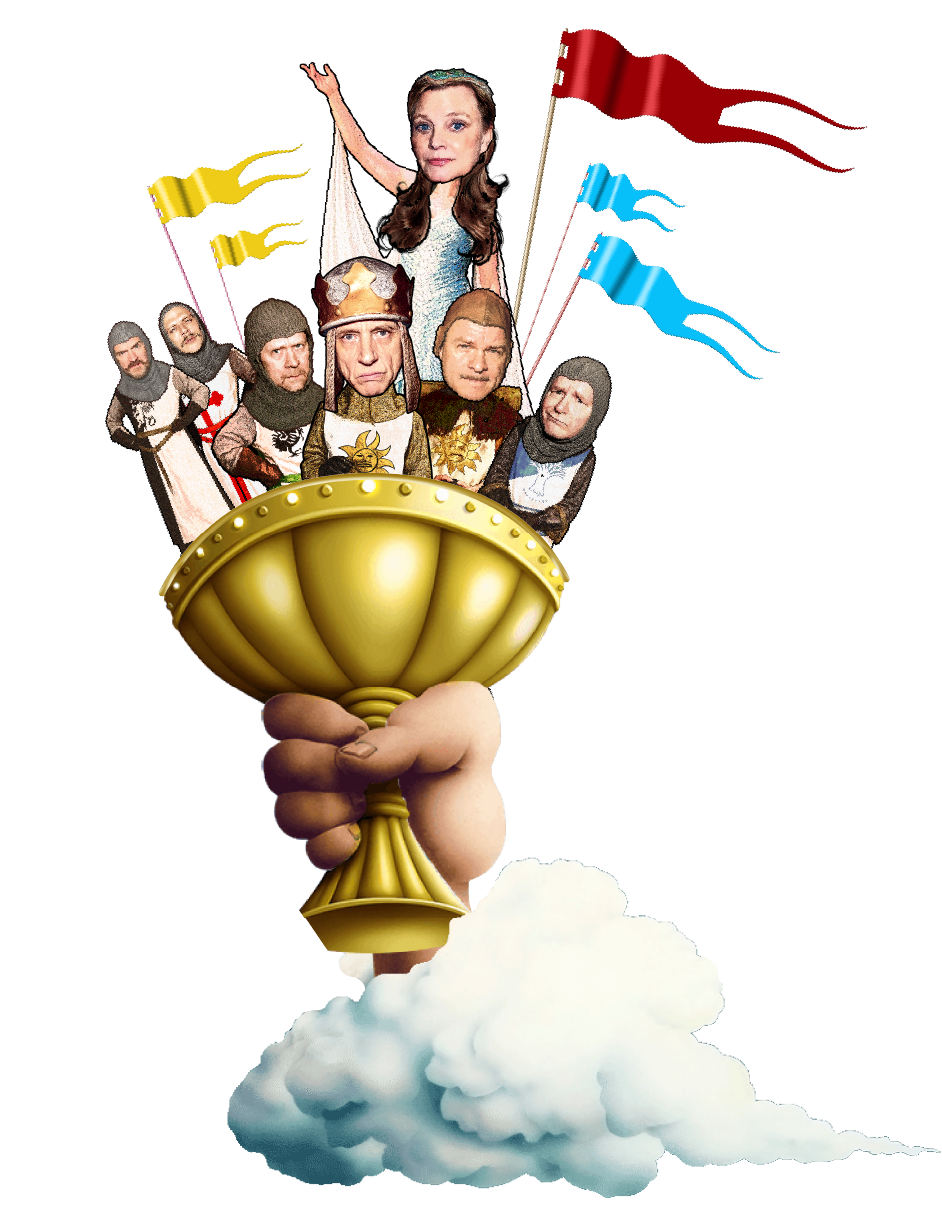 Spamalot sattes upp inför fulla hus på Nöjesteatern 2010-2011. Hösten 2026 gör den efterlängtad comeback – 1…2…5 ta fram era döda, och låt oss dra till Camelot!